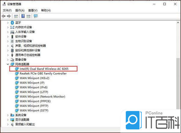 2、 下拉找到“网络适配器”栏,找到笔记本的无线网卡,一般含有“ Wireless”等字样,双击无线网卡打开其属性。