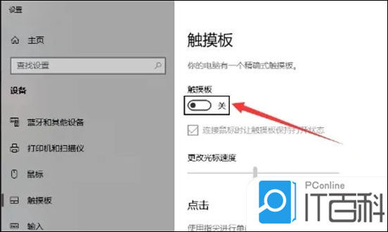 3. 在触摸板设置界面,可以看到触摸板是关闭的;