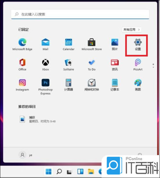 1. 单击win11桌面下方菜单栏中的Win图标,找到【设置】选项打开;