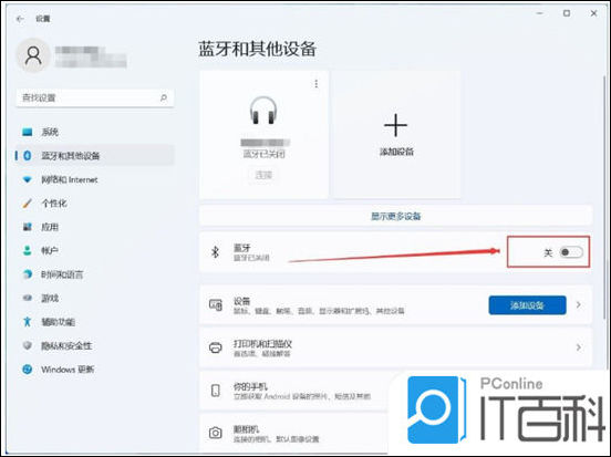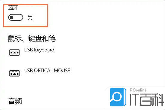 3. 在右侧可以查看到蓝牙当前的状态,如果还没开启的话就滑动滑块,将蓝牙【打开】;