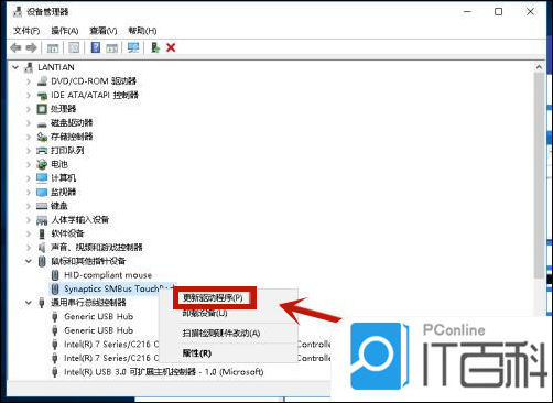 4. 之后在右键点击“Synaptis SMBus TouchPad”并点击更新驱动程序;