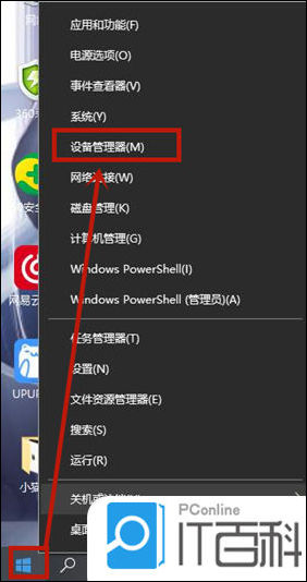 1. 鼠标右键点击桌面左下角的“开始”在打开的菜单中点击进入“设备管理器”;