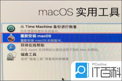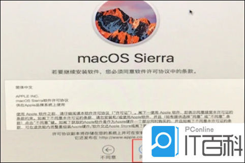 4. 进行选择重新安装MacOS系统,屏幕界面会重新显示到第一个示图,选择第二个“重新安装macOS” 然后点继续。选择完毕后,会提示“若要设置安装macOS Sierra,请点继续”,点继续即可;