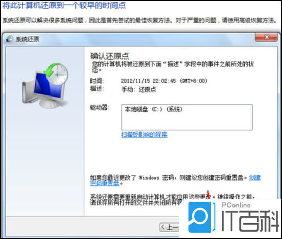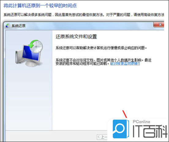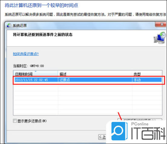 6. 选择还原点,一般都是默认的初始的状态,如图;