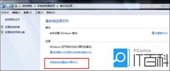 3. 点击恢复系统设置和计算机。如果你的计算机没有开启还原的功能,就先需要开启这个功能;