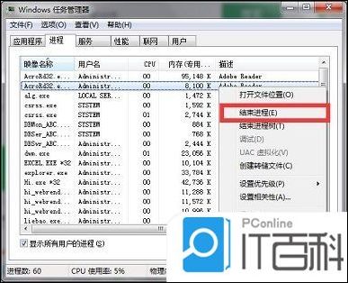 1. 按下键盘上的“ctrl+alt+Delete”,打开系统任务管理器。在其中选择进程,然后鼠标右键点击不必要的进程,选择“结束进程”,减少CPU负荷。