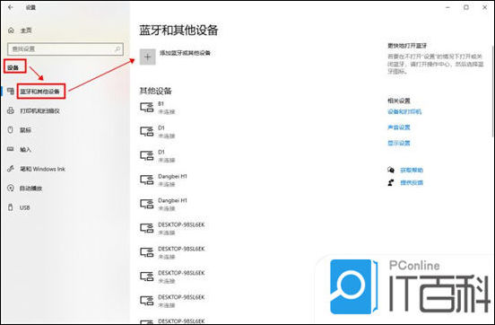 1. 直接Windows设置菜单里的【设备】设置,找到【蓝牙与其他设备】,点击+号添加设备;
