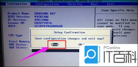 5. 最后,选中“YES”按下键盘上的“Enter”件就可以了。