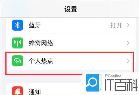 2. 在设置界面中找到“网络和连接”下方的“个人热点”并点击打开;