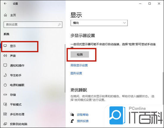 5. 如果笔记本电脑没有自动检测出显示器,则需要手动检测,具体操作方法如下:“win+i”键——系统——显示——检测——投影选项卡——扩展。