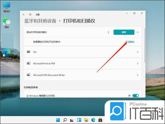 4. 添加后出现我想要的打印机不在列表中的字样,然后点击手动添加;