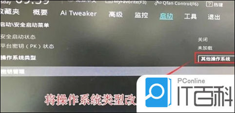 3、再返回到" 安全启动菜单 "的选项,将操作系统类型改成" 其它操作系统 "。