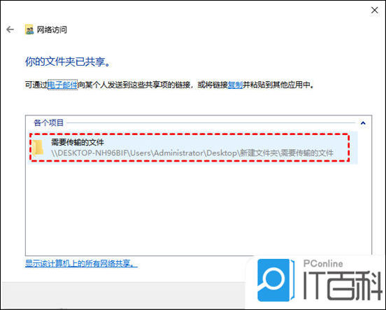 6. 记下其他用户通过网络访问内容所需的文件夹的网络路径,然后单击完成;