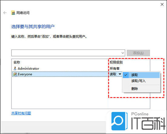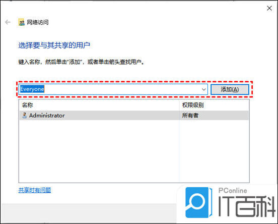 4. 从下拉菜单中选择“Everyone”。然后单击“添加”;