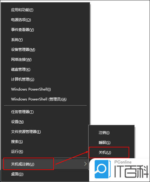 1. 我们也可以使用“win+X”键呼出选项来选择关机。