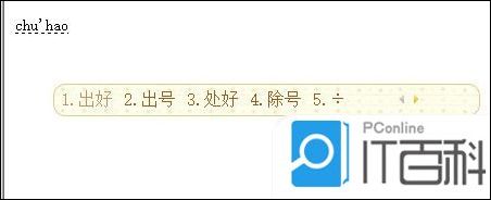 2. 将文字输入切换到中文输入法,输入chuhao,然后选择即可。