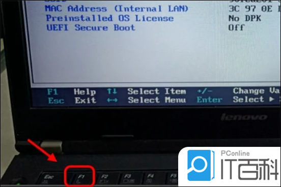 3. 进入BIOS设置开机进入启动界面之前,不间断的按F1,进入联想BIOS界面;