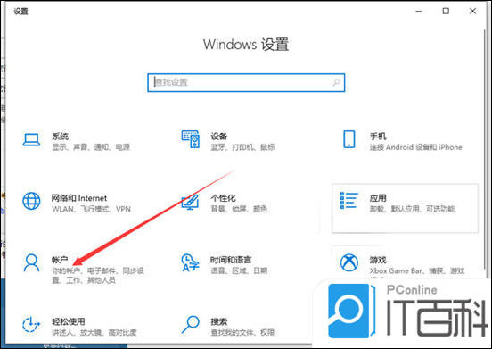 2. 单击“帐户”;