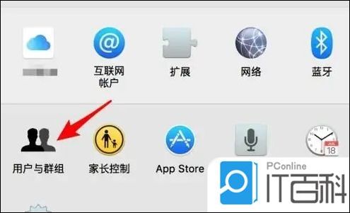 2. 然后点击打开系统偏好设置,点击“用户和组”选项按钮并设置;