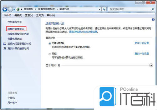 5. 在左侧找到唤醒时需要密码,点击进入下一个选项;