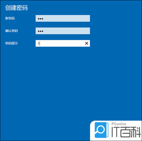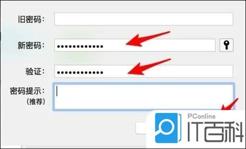 5. 然后输入您的密码和提示关键字;