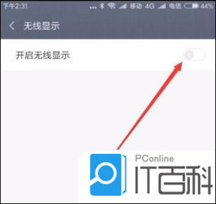 12. 在打开的无线显示页面中,点击“开启无线显示”后面的开关,使其处于打开状态;