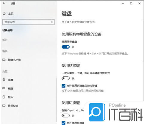 4、弹出的界面,我们将使用屏幕键盘的开关打开。