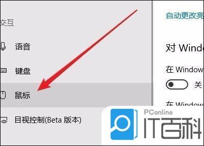 3、在打开的轻公使用窗口中,点击左侧边栏的“鼠标”菜单项。
