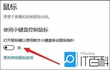 5、我们把该设置项下面的开关设置为关闭状态,这样键盘控制鼠标的功能就被关闭了。