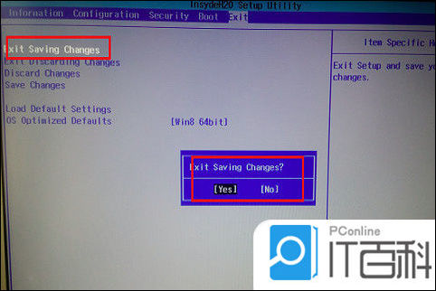 5、最后,修改完Bios后,点击“F10”键,会提示“Exit Saving Changes”,然后选择“yes”就可以保存并退出Bios,通过此方法可以禁用Fn键功能。