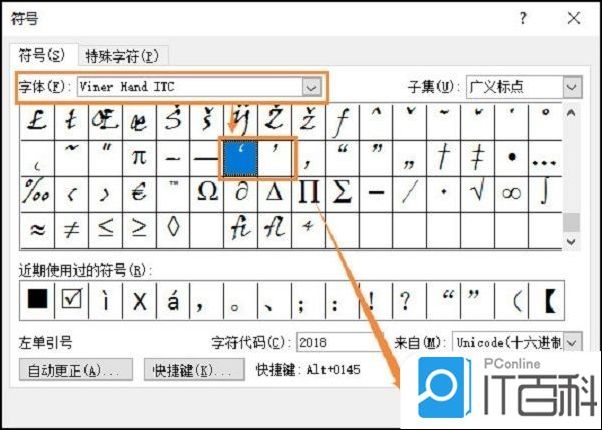 在word中插入。依次点击”插入“-”符号“-”标点符号“,然后选择字体为”Viner hand ITC“,找到单引号插入即可。