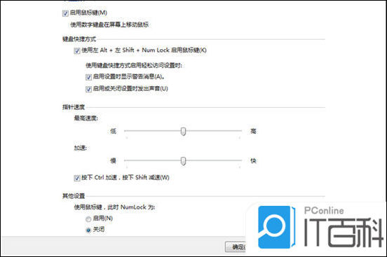 4. 在打开鼠标键窗口后,设置好适合自己的鼠标速度等选项,然后点击右下角的“应用”,就可以使用鼠标键;