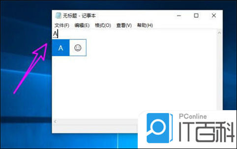2、然后按下键盘上上的caps lock键,输入法的图标变为“A”,说明切换到了英文大写状态,此时输入的字母都是大写英文字母,再次按下caps lock键就可以切换回小写;