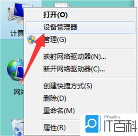 4、接下里我们需要回到桌面,右键点击我的电脑打开设备管理器。
