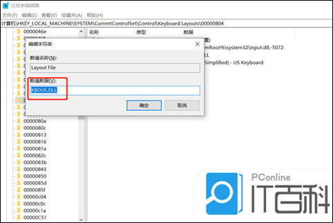 如果键盘驱动同样没问题的话,那我们还可以通过修改注册表来试试,点击“ 开始 ”找到“ 运行 ”,用软键盘输入“ regedit ”,再注册表编辑器上依次找到“ HKEY_LOCAL_MACHINE\SYSTEM\ControlSet\Control\Keyboard Layouts\00000804 ”,打开00000804可以看到右侧子项里有“ Layout File ”子项,双击打开该项,将“ 数值数据 ”中的“ kbdus.dll ”改为“ kbdjpn.dll ”,再点击“确定”就可以了。