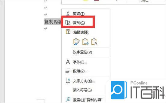 1. 选择需要复制的内容之后,直接按快捷键“Ctrl+C”就可以复制上内容。也可以右击鼠标,点击“复制”选项进行复制内容;