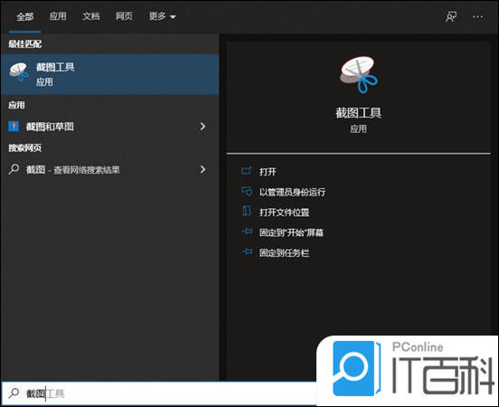 1. 按下快捷键 Ctrl+S 打开Windows 10的搜索界面,并输入“截图”二字,从搜索结果中点击“截图工具”即可进入;