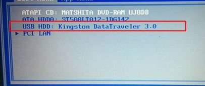 3、从BootMenu中选择USBHDD选项,然后按ente进入U盘启动就可以啦。
