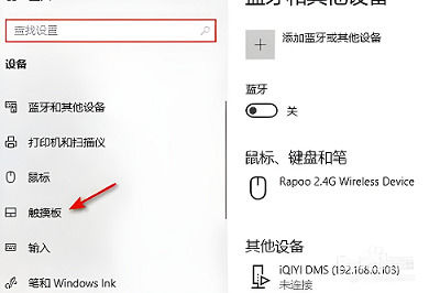 3、在设备中找到 触摸板 然后点击关闭即可。