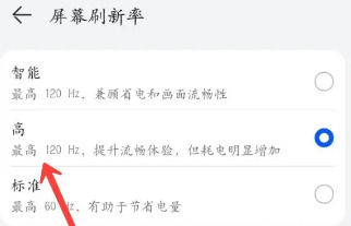 3、最后选择" 高刷新率 ",就可以开启120Hz刷新了。