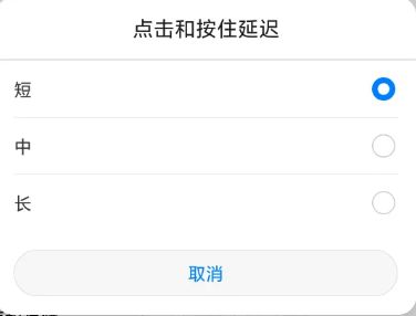 4、最后就可以设置长按延迟的时间,有短、中、长三个选项。