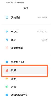 2、在设置页面点击 锁屏 ,再将抬起亮屏的开关开启即可。