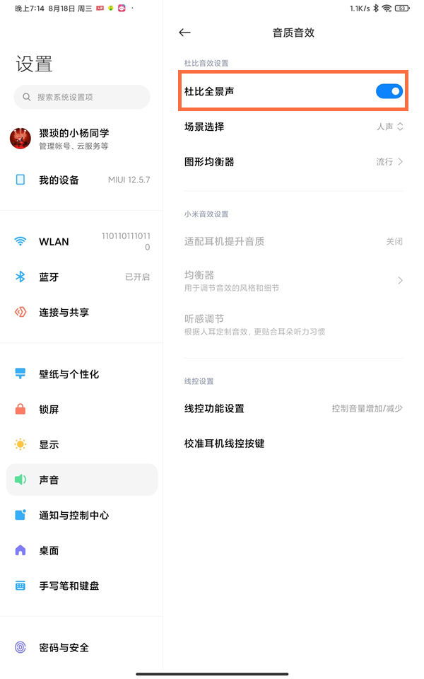 小米平板5杜比全景声开启方法介绍