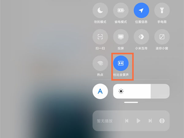 或者也可以从屏幕顶部下拉状态栏,点亮【杜比全景声】。