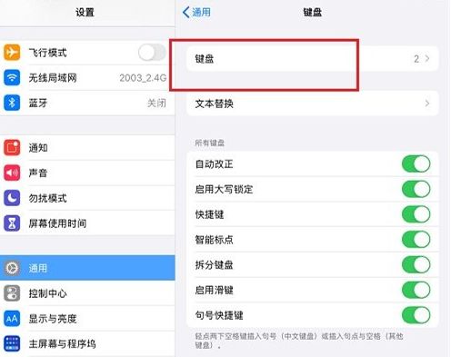 1、打开设置,选择【通用】,点击【键盘】,