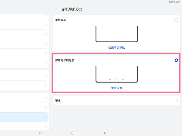 3、找到更多设置,可自主选择返回键组合方式。
