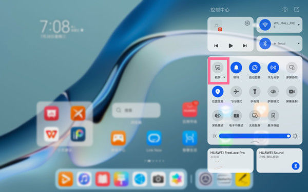 2、快捷开关截屏:在平板屏幕右侧下拉打开控制中心,点击截屏图标。