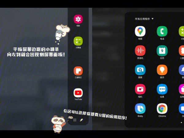 通过侧屏幕面板分屏方法:
