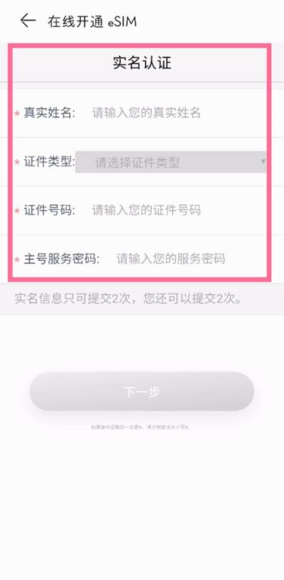 5、之后来到在线开通eSIM的页面。