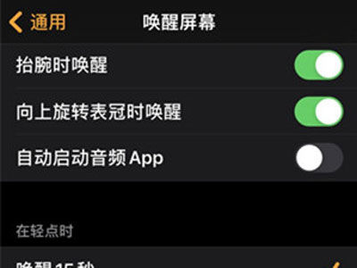 3、在设置唤醒屏幕中勾选按下表冠后这一选项。